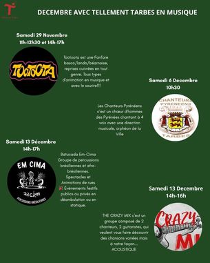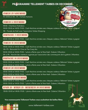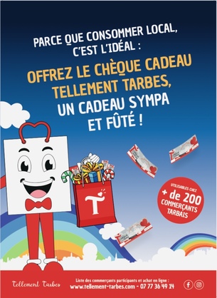 Animations du 29 Nov au 04 Jan Le chèque cadeau Tellement Tarbes Vous cherchez un cadeau local, sympa et fûté ? Vous souhaitez soutenir vos commerçants Tarbais ?... En savoir plus